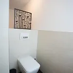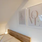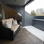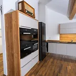 Hochwertiges Apartment / 120M^2 / Dachterrasse / Parking biedt een balkon en een zitruimte die zijn ingericht met een bank en een bureau, samen met moderne voorzieningen zoals een TV en een flatscreen TV met satellietzenders. Rookmelders maken deel uit van de veiligheidsvoorzieningen op de kamer. Het appartement biedt 2 slaapkamers aan. De 2 badkamers in de accommodatie zijn uitgerust met een inloopdouche, een apart toilet en een badkuip en ook met een haardroger en handdoeken.